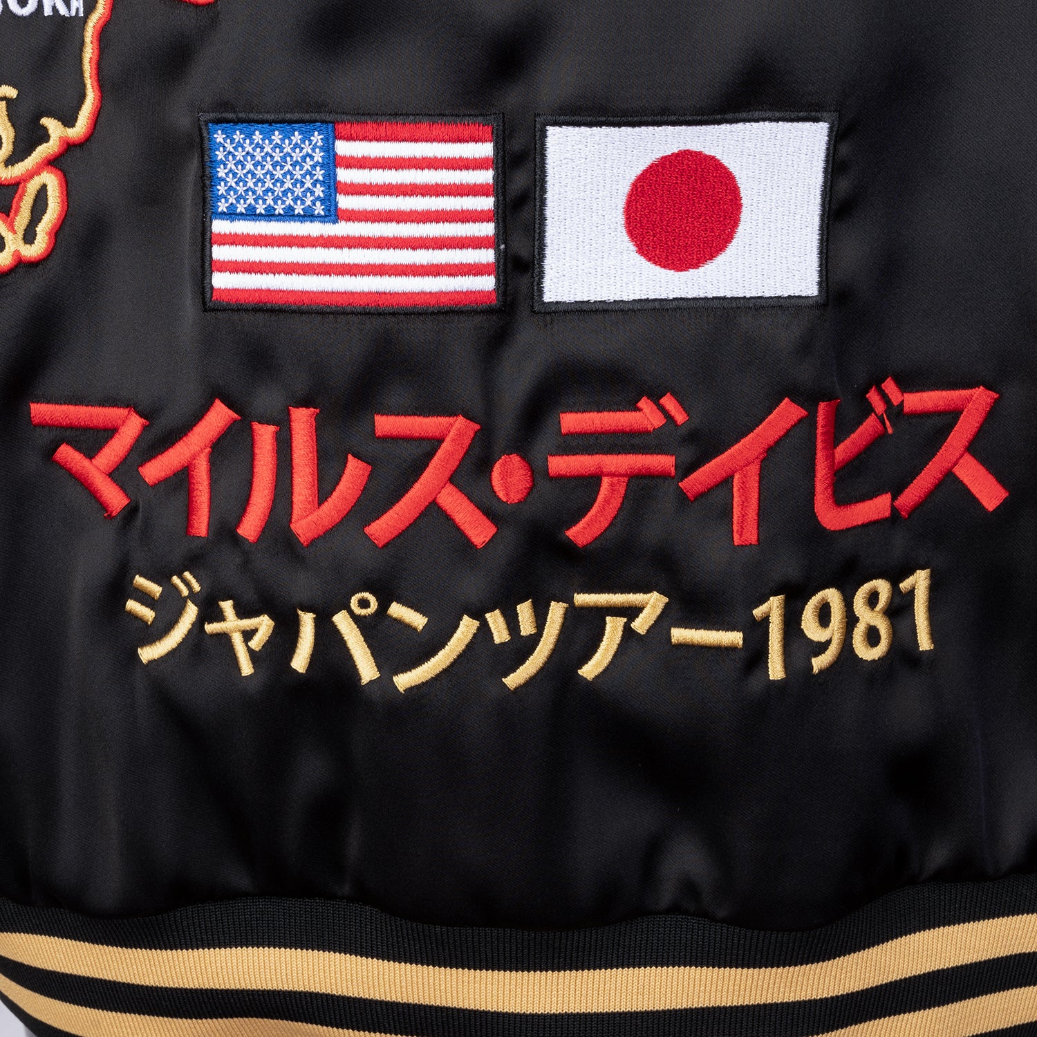 Introducing the 1981 Miles Davis Japan Tour Jacket, a sartorial masterpiece that pays homage to one of jazz's most iconic moments. Step into the world of musical enchantment and relive the magic of Miles Davis's groundbreaking performances in Japan. Crafted with precision and attention to detail, this jacket encapsulates the spirit of the 1981 tour, transporting you back to a time when jazz reigned supreme. With its sleek silhouette, premium materials, and exquisite design, this jacket is not only a wearable work of art but a testament to the enduring legacy of Miles Davis. Embrace the allure of jazz history and make a bold statement in this exclusive collector's item. Featuring a custom lining this exclusive piece is only available at the Miles Davis Webstore. The embroidery and craftsmanship of this jacket is the best you will find anywhere.